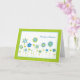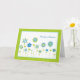 Offer Passover blessings with this stylish card featuring bright green and blue flowers on white background with green border. There is a Star of David in the centre of the tallest flower and also dotting the letter "i" in Blessings.