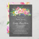 Elegant and stylish bridal shower invitations featuring bright, colourful watercolor florals on a chalkboard background and comes with a matching back pattern.