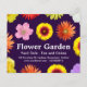 An attractive flyer template decorated with isolated flower motifs originally designed with garden events such as parties or yard sales in mind but could also be adapted to other uses. The reverse side of the flayer has been left blank with a light grey background colour but can be further customised. The background colours can also be customised.
