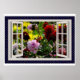 Flower Garden, Open Window, Dahlias Poster