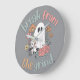 A clock featuring the phrase "Break from the Grind" in bold letters, accompanied by a graphic of a cute Halloween ghost adorned with colourful flowers, creating a festive and whimsical design.