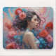 This captivating artwork blends surrealism and realism, featuring a woman surrounded by vibrant, floating flowers in shades of red, pink, and blue. Her reflective, futuristic garment and flowing hair add dynamic energy, while soft brushstrokes create depth. Perfect for art lovers, this piece brings beauty, elegance, and a sense of wonder to any space.