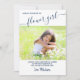 Personalised wedding proposal card for your flower girl with your own custom photo, elegant handwritten script and blue and white colour theme. The photo template is set up for you to add your own picture to the front. The wording reads "[flower girl name], please be my flower girl .. [groom name and I are getting married so the next question is, will you be my flower girl? [sign off and bride name]". All of the wording is editable, except the first instance of "flower girl" which is hand lettered. The typography and background colours can be change - please click customise further - or message me for assistance.