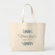 A botanical floral flower girl wedding cute stylish bag, a floral greenery blue flower, for your flower girl bridesmaid calligraphy script, an elegant chic feminine typography, a bridal party shower bachelorette, a girly girl romantic garden style, a stylish maid of honour, a classic classy traditional floral design, with blue delphinium summer spring, a custom personalised bridal party gift