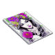 A black and white line drawing of a beautiful girl covered with colourful flowers