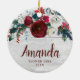 Flower Girl Personalised Burgundy Roses Christmas Ceramic Ornament. Personalise with your custom information on both front and back.