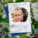 Say thank you to the flower girl with a pretty card containing her picture! White floral background, with navy blue, fun text and a sample message. Her photo is in a brushstroke, round frame, which makes the edges uneven. Add a wedding photo of the Flower Girl. Reverse is solid dark blue. Change colours using the design tool.