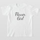 Flower Girl script on plain white. This would be cute as a very casual shirt for a flower girl to wear for the wedding rehearsal.