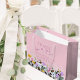 Personalised wildflower wedding gift bag for your flower girl - or edit for bridesmaid or someone else in your wedding party. The design has a floral border of wild flowers in pink lilac yellow and blue and sits on a pretty pink background with soft haze of white watercolor wash. The template is set up for you to also add the bride and groom's name and wedding date on the back. If you would like matching products, please browse my Wildflower Lawn collection or message me to add the design templates you need.