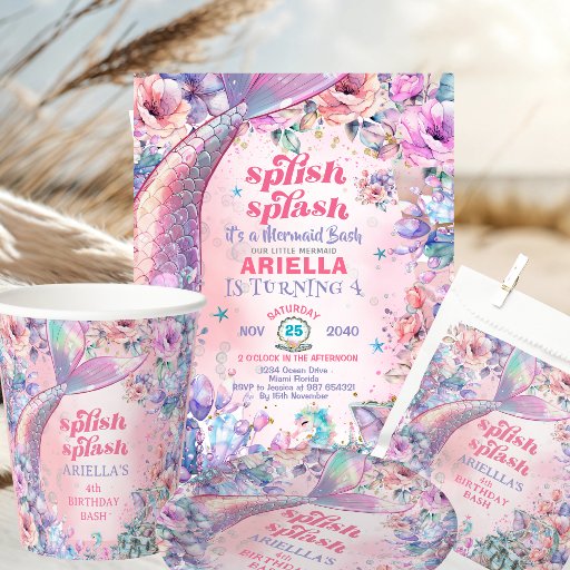 Flower Glitter Mermaid Tail Splish Splash Pink and Purple