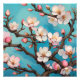 This design shows a branch of a bloom in full bloom against a bright blue sky. The delicate white and pink flowers symbolize the arrival of spring and new life. The contrasts between the soft colors of the flowers and the vibrant background convey a feeling of freshness and serenity, perfectly captured in an impressionist style.