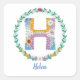 Flower Letters Initial "H" with Personalised name Square Sticker