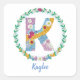 Flower Letters Initial "K" with Personalised name Square Sticker