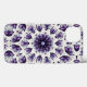Flower mandala iPhone case with a kaleidoscopic pattern created from a watercolor and ink drawing of an abstract lotus flower in blue, violet and black.