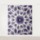 Flower mandala tapestry with a kaleidoscopic pattern created from a watercolor and ink drawing of an abstract lotus flower in blue, violet and black.