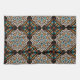 The repeating circular forms with intricate inner detailing make this pattern geometric and organic with flower mandalas and tiled patterns. The subtle color accents bring in warmth without overwhelming the flower mandalas in brown, tan, turquoise, orange, white and black.