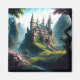 Keychain of a beautiful, imaginative, classic fairy tale castle in a lush, green meadow with pink flowers. It was made with Leonardo.ai.