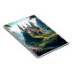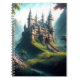 This is a notebook of a beautiful, imaginative, classic fairy tale castle in a lush, green meadow with pink flowers. It was made using Leonardo.ai.