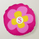 Bold bright monogram graphic flower girl bedroom round throw pillow. Bright pink, yellow and dark pink girls round cushion, ideal to personalise a girls bed.