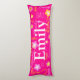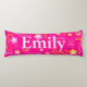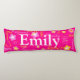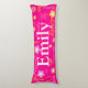 Cute pink, yellow and white patterned 5 letter personalised name body pillow. Customise with your own name currently reads Emily. Background colour can also be changed if required currently pink. A perfect gift for girls. Original art and design by Sarah Trett exclusively for www.mylittleeden.com only on Zazzle.