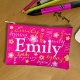 Cute pink, yellow and white patterned 5 letter personalised name pouch. Customise with your own name currently reads Emily. Background colour can also be changed if required currently pink. A perfect to use as a pencil case to prevent mix ups and loss or for cosmetics. Other matching items are available. Original art and design by Sarah Trett www.sarahtrett.com exclusively for www.mylittleeden.com