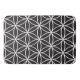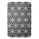 The flower of life symbol in a repeat lined pattern in white on a black background.