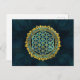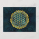 Flower of life gold an blue texture glass postcard