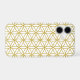 The flower of life symbol in a repeat pattern in gold detail on a white background.