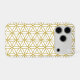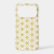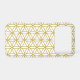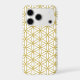 The flower of life symbol in a repeat pattern in gold detail on a white background.