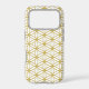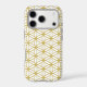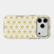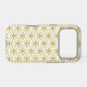 The flower of life symbol in a repeat pattern in gold detail on a white background.