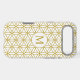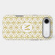 The flower of life symbol in a repeat pattern with a center circled initial for a personalized item in gold detail on a white background.