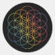 Flower of Life Rainbow Gradient Pattern on Black Classic Round Sticker