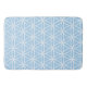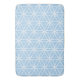 The flower of life symbol in a repeat lined pattern in white on a light blue background.