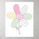 A combination of soft, quilt inspired designs, and a flower creates this cute, bedroom wall decor art print. The background is white, while the flower consists of white with light shades of green, yellow, and pink. This art print features a signature by me, the artist.