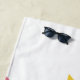 This beach towel has a mid-century modern design of flower made from squares, ovals, and diamonds that have been manipulated to form flowers.
