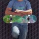 The modern and stylish design on this skateboard comes with a beautiful pattern with flowers and triangles. For girls and boys.