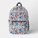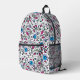 Flower Pattern blue Swirl Berry on White - Printed Backpack