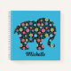 Flower Pattern Elephant on Blue Personalised Notebook