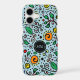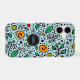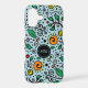 Fresh Summer Breeze Floral Phone Case - Flower Pattern orange Swirl Berry Design is hand drawn and shows a seamless repeating floral pattern with green leaves and round orange berries. The main colors in this Pattern are, green, orange, yellow, blue, on a teal blue Background.