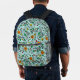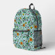 Flower Pattern orange Swirl Berry on Turquoise - Printed Backpack