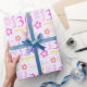 Modern text and flower design personalised age birthday girls gift wrapping paper, featuring graphic flowers and your own seven letter name in lilac, pink, white and yellow. Personalise with your own short name (please note not all names will fit due to the nature of the font) and age, currently reads Sanchia 30, other name lengths are available, if you need assistance contact me, happy to post one for your name. A great way to give a personalised touch to birthday gifts. Uniquely designed by Sarah Trett.