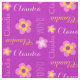 Modern text and flower design personalised girls text typographical name fabric. Colourful pink and yellow graphic flowers and your own seven letter or shorter name in purple, pink, white and yellow. Personalise with your own name (please note not all names will fit due to the nature of the font) currently reads Claudia, other name lengths are available, if you need assistance contact me, happy to post one for your name. A great way to personalise your sewing and quilting projects. Art and design by Sarah Trett.
