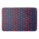 Flower Power is the name of the original pattern by ZoeSPEAK on this large Bath Mat. The artwork began with an original photograph of red hibiscus flowers, which float above the repeated words “FLOWER POWER” on a deep grayish blue background. There are lime green dots scattered throughout. Add some flower power to your life!