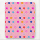 Colourful Flower Power pattern on pink background. Playful floral design.