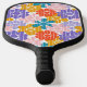 This pickleball paddle has a mid-century modern design of mixed flowers in flower power colours. Want different colours? Message me.