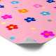 Colourful Flower Power pattern on pink background. Playful floral design.
