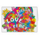 paint-object artworks by EDDA Fröhlich | Object: rainbow, flowers, hearts, peace signs, spiral, sun, butterfly | words: LOVE, PEACE, FREEDOM | Topic: 70s - Flower Power - Make Love Not War