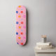 Colourful Flower Power pattern on pink background. Playful floral design.