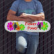 Bright colourful classic sixties flowers surround the words "Flower Power" Great retro themed skateboard.