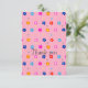 Colourful Flower Power pattern on pink background. Playful floral design.